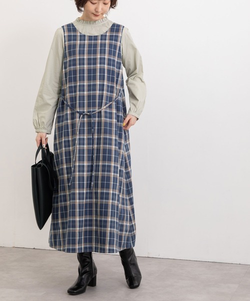 大人シルエットのジャンスカ ■Point ・ほど良く広がるAラインのシルエットが大人らしいジャンスカです。 ・トラッドな雰囲気のマルチカラーのチェックが秋ムードを高めます。 ・深めのVネックとクルーネック、どちらを前にしても着られる2wayタイプです。 ・両サイドポケット付き。 ■Styling ・ロンTやニットなどと合わせてスタイリングが簡単に完成します。 -------------------- 透け感:なし 厚さ:普通 伸縮性:なし 裏地:あり -------------------- POU DOU DOU プードゥドゥ ひと手間加えた存在感のある「日常着」 いつまでもときめきとかわいいを忘れない方への 愛着を持てるワードローブ = お気に入り登録がおすすめ!= POU DOU DOUのお得な情報をいち早くお届け致します◎ アイテムをお気に入り ⇒ SALE START / 完売COLOR再入荷 / LAST1点 etc... ブランドをお気に入り ⇒新商品 / 再入荷 /クーポン・セール情報 etc...
