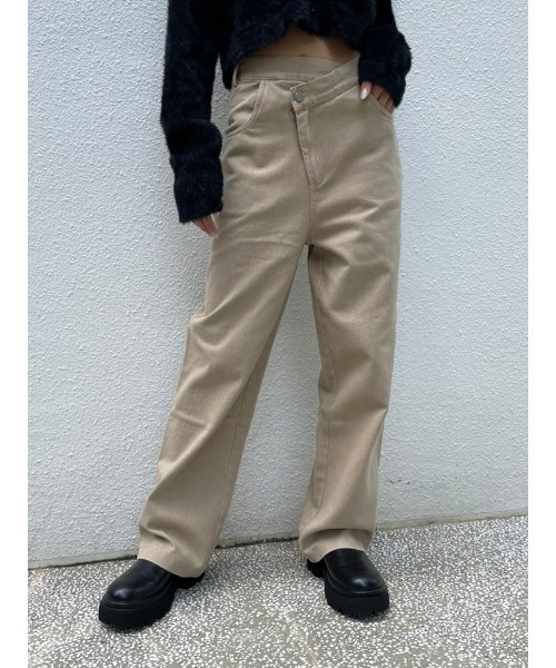 ヴィンテージ風の色褪せ感が可愛いワイドPT。ルーズなサイズ感なのと、ウエストデザインがアシメになっている為インスタイルやショートトップスとの合わせがおすすめです。