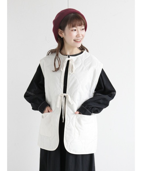 表情豊かなキルティングが温かみのある印象を与えるベスト。フロントはリボンで結ぶタイプなので、ほんのりと女性らしさを演出します。ベーシックなクルーネックが、あらゆるトップスと合わせやすいのもポイント◎季節の変わり目に大活躍間違いなしのワードローブに入れたいアイテムです。※商品画像は、撮影環境やお客様のご利用のPC・スマートフォンのモニター環境などにより実物と色味に差異がある場合がございます。★《お気に入り登録》でお得な情報をGET★① 商品ページ内のハートマークをクリック!② 以下通知が受け取れます!「再入荷」「ラスト1点」「特別セール」etc..\ブランド、ショップのお気に入りも是非!/
