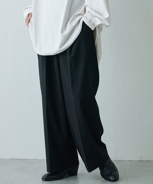 Lui's(ルイス)22AWより、クラシカルで綺麗な印象のストライプワイドストレートパンツの登場です!Lui'sでも定評のある穿き易いシルエットに載せた、ストライプのワイドパンツです。【素材】素材には、サラッとしたテンセル×レーヨン×ポリウレタンの混紡素材を使用。肌触りの良いサラッとした肌触りと、スラックス特有の程よいハリとドレープ感がポイント。今時期から、秋冬も着て頂ける着回しの出来るアイテムです。【デザイン】ワイドですが、ウエストからストンと落ちるストレートなデザイン。フロントのタックを深く取ることで、着用した際にスッキリとした見た目になります。細目のチョークストライプを採用し、クラシカルでキレイな印象に。ワイドパンツを穿いたことが無い方でも、着こなしし易い一枚です。【コーディネート】誰でも綺麗に見える、特徴的なシルエット。BIGTに合わせても、シャツに合わせて相性抜群です。また今季は、テーラードジャケットやコートなどの綺麗めなアイテムに組み合わせモードなスタイルを楽しんでいただくのもオススメです。【ブランド】Lui's(ルイス) モテる男のワードローブをテーマにモード&ストリートのMIXコーディネートを提案。着心地、カッティング、素材感を重視した商品を国内外問わず編集し発信していく。▼商品のお気に入り登録完売カラーの再入荷通知やセール情報を受け取ることができます。▼PALCLOSETアプリにてブランドフォロー新商品や再入荷等、いち早くブランドのお得な情報を受け取ることができます。※掲載画像の商品の色味は、屋内の光の照射や角度により実物と色味が異なる場合がございます。予めご了承ください。