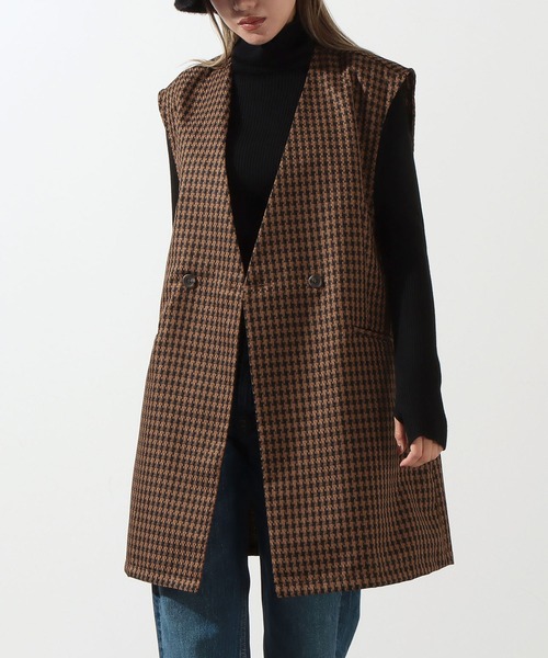 千鳥格子柄がシーズナブルな印象を高めるジレ。 ビッグシルエットで今年らしい雰囲気を演出します。 表情豊かなジャガード素材を採用し、1枚で映える風合いに。 裏地なしのため、コーディネートにさらっと軽く羽織れるのが魅力です。 ※ストレッチなし※裏地なし※ポケットあり ※スリットあり ※生地のデザイン上、実際の商品と画像とで柄の配置が異なる場合がございます。予めご了承ください。 ※商品のお取扱いに関しましては、商品に付属のアテンションカード、洗濯ネームをご覧ください。 ※モデル着用画像は光の当たり具合で色味が違って見える場合がございます。 ※商品の色味の目安は、商品単体の画像をご参照ください。 【お買いものをお楽しみいただく為に!】 ▼商品のお気に入り登録 完売カラーの再入荷通知や、ラスト1点の通知、セールの通知も受け取ることができます。 ▼ブランドのお気に入り登録 新商品や再入荷など、いち早くブランドのお得な情報を受け取ることができます。