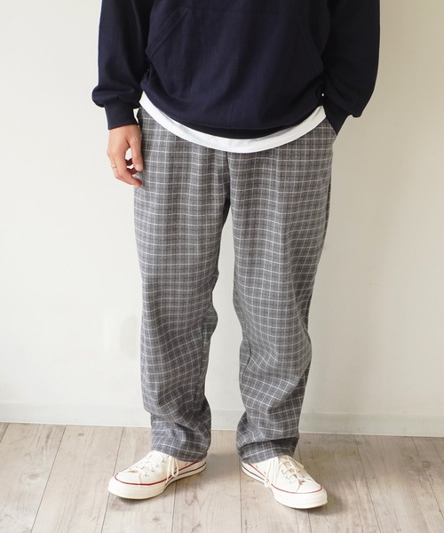 【 GGD 】 チェック ワイド テーパードパンツ秋冬におすすめワイドテーパードパンツ柄はトレンドのチェック。ウエストがゴム仕様なため、タックの入ったようなワイドシルエット。ゆったりと履けるデザインでありながら、裾にかけてキレイなテーパードに仕上げている為、より洗練されたスタイリングになります。シンプルなトップスに合わせるだけでオシャレ見え!リラックスした雰囲気でオーバーサイズアイテムとの相性、バランスも◎コーディネートのアクセントとして活躍するアイテムです。※撮影・モニター環境等により実際の商品の色味と異なって見える場合がございます。【インフォメーション】◆商品のお気に入り登録完売カラーの再入荷通知を受け取ることができます。ぜひご登録ください♪◆ブランドのお気に入り登録新商品や再入荷などのお得情報を受け取ることができます。ぜひご登録お願いします。