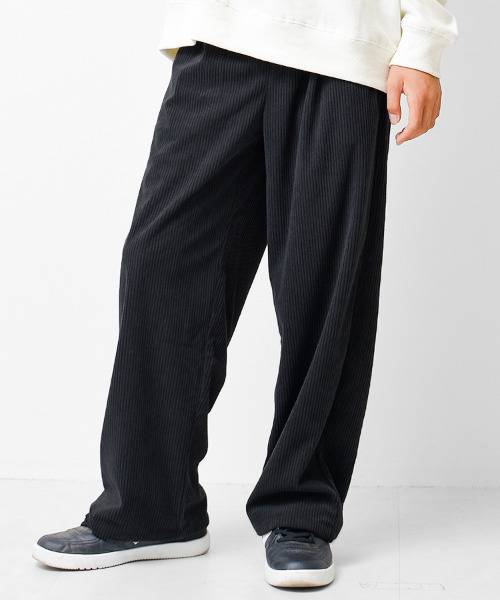 コーデュロイワイドパンツ。冬の定番コーデュロイワイドパンツ。ワイドシルエットにすることで大人っぽいトレンドデザインに仕上げています。コーディロイ素材は太めの畝(うね)を使用することでメンズのような風合いの素材です。