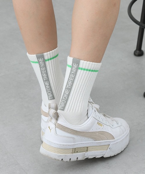 COLONY 2139オリジナルロゴ入りソックス”TWO ONE THREE NINE”のブランドロゴが入ったソックス。縦に入ったロゴと、配色でポイントになったカラーラインが目を惹くデザインです。パンツの裾からさり気なく覗かせれば、いつものスタイリングもよりおしゃれに◎使いやすいクルー丈で、スニーカーからサンダルまで幅広く合うのでオールシーズン活躍してくれます。■サイズ23-25cm高さ: 15cm■素材ポリエステル, 綿, その他※着用、お取り扱いの際は、商品についている品質表示とアテンションタグを必ずご確認下さい。※商品タグに記載されている商品名がWEBでの表記名と異なる場合があります。※画像の商品はサンプルです。実際の商品と仕様、加工、サイズが若干異なる場合がございます。 ※照明の関係により、実際よりもやや明るく見える場合がございます。またパソコンなどの環境により、若干製品と画像のカラーが異なる場合もございます。予めご了承くださいませ。 【お気に入り登録】してお得な情報をCHECK!!・「商品のお気に入り登録」で再入荷通知や、ラストの通知、セール通知も受け取ることができます。・「ブランドのお気に入り登録」で新商品や再入荷など、お得な情報を受け取ることができます。