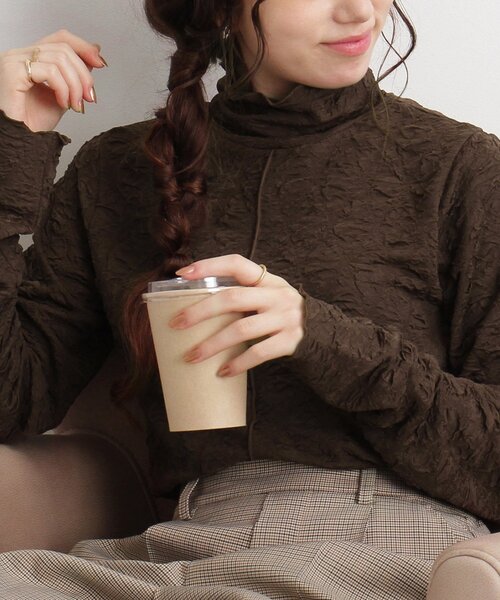 【デザイン】凹凸感のフクレ素材が可愛いハイネックプルオーバー!フクレの素材感が印象的で程よい厚みもあり価値観がある1枚です。トレンドのメロウ使用で1枚着でもシャツやTシャツなどのインナーにも大活躍間違いなし!色違いで欲しくなるアイテムです。【生地感】伸縮性に富み、さらっと軽い着心地の生地感です。※ホワイト(002)はやや透け感があるため、インナーの着用をおすすめします。#CutieBlonde#Cutie#cutieblonde#cutie#キューティブロンド#キューティ#20代#30代モデル情報:身長160cm B78 W59 H85 着用サイズ:02(M)店舗へのお問い合わせ商品番号:256-15019●製品寸法:01(S):着丈47cm B84cm 袖丈67cm 肩幅33cm02(M):着丈49cm B89cm 袖丈68cm 肩幅34cm03(L):着丈51cm B94cm 袖丈70cm 肩幅35cm備考: