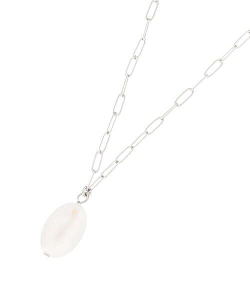 【デザイン】 淡水パールのワントップのネックレス。 スクエアのチェーンが、華奢でシンプルながらも存在感を与えます。 2段階で長さの調整が出来ます。 【素材】 自然由来の淡水パール。 1点1点形が異なり、同じものは2つとないところがポイントです。 【スタイリング】 シンプルなニット等のアクセントにオススメ。 クルーネックやVネックのトップスにも好相性です。 特に下記の品番のコーディネートがおすすめです。 ・フレンチスリーブニット(153-14553) ・プルオーバー(153-14490) 店舗へのお問い合わせ商品番号:153-05114 ●製品寸法: FREE:全長70cm モチーフH1.5cm モチーフW1.1cm 備考: