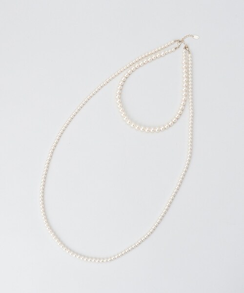 パールの2連ネックレス。オケージョンシーンを華やかに演出します。 【デザイン】 首元を華やかにするフェイクパールネックレス。 小さいフェイクパールでオケージョンシーンはもちろん、デイリーに着るカットソーとも好相性です。 ロングとショートの2本セットで、単品又は2本使いでと使い勝手も良く、コーディネートに合わせたスタイリングが楽しめます。 【素材】 フェイクパールを使用し、表面が滑らかで照りが良いです。 【コーディネート】 オケージョンシーンの華やかなシーンから単品使いでカジュアルまでお使い頂けます。 店舗へのお問い合わせ商品番号:153-05112 ●製品寸法: FREE:全長93cm モチーフ直径0.8cm 備考: