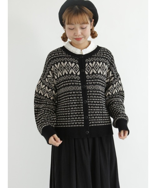 ジャガード織りのデザインがヴィンテージライクな雰囲気を漂わせるカーディガン。 前後着が可能で、トップスのように着用することが可能なアイテム。 ゆったりとしたシルエットは、体のラインを拾いにくいのも嬉しいポイントです。 スカートやパンツと合わせるのはもちろん、ワンピースの上から羽織っても◎ ※商品画像は、撮影環境やお客様のご利用のPC・スマートフォンのモニター環境などにより実物と色味に差異がある場合がございます。