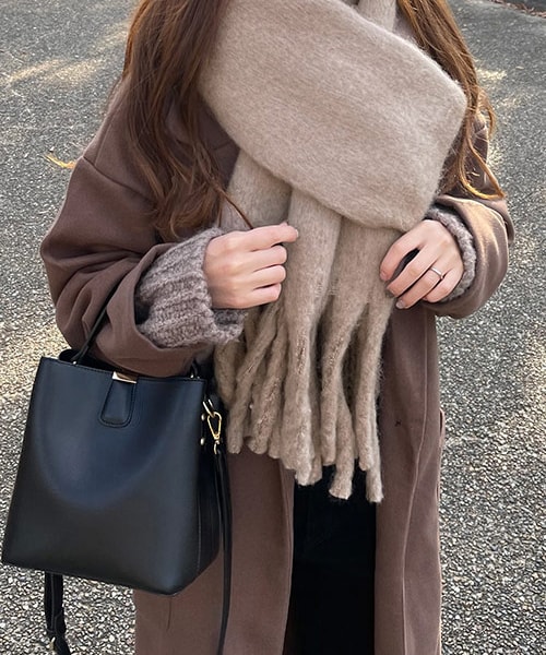 ボリュームのあるふんわりとしたマフラー。カラーバリエーション豊富なので色違いで使い分けるのにもおすすめです。Fitting - ライトココア