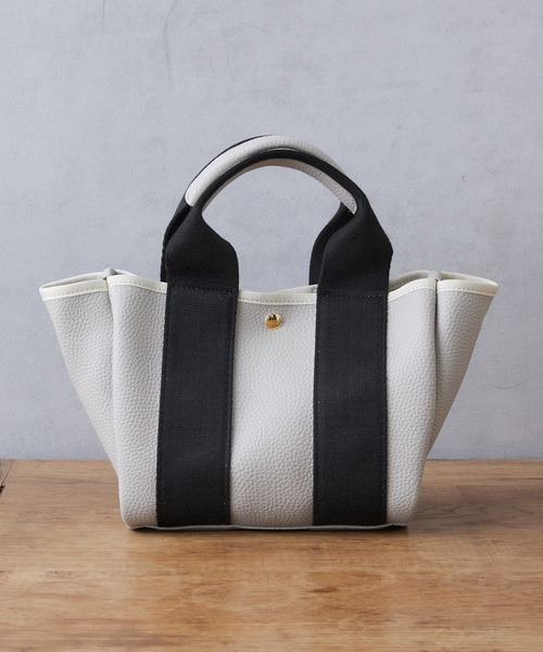 ▼収納しやすさ抜群!中がきれいに保てるトートバッグテープハンドルとカラーコンビが大人っぽい、2wayで使える便利なトートバッグ。太いハンドルがトレンド感をアップしてくれます。前後にあるあおりポケットが使いやすく、メイン収納のサイド部分にもミニポケットが付いているのでスマートフォンやパスケースなどすぐに取り出したい小物の収納に、また小さいものも見つけやすく便利です。ペットボトルホルダーもついており、立てて収納できます。周りの荷物に水滴がつくのを防げるのも嬉しいポイントです。同じシリーズの大きいデザインもご用意しております。【cache cache カシュカシュ】カシュカシュとはフランス語で「かくれんぼ」。ガーリッシュとちょっと背伸びをした大人っぽさをミックスしたデイリーカジュアルなファッション小物を展開。カラフルで素朴なハンドクラフトやかわいらしいモチーフ使いで、洋服とのコーディネートに可愛らしさと遊びをプラスするバッグを提案します。