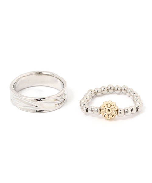 存在感のある指先に異なるデザインを組み合わせた、カジュアル派のリングセット。お花やハートのモチーフも、メタリック素材なら甘すぎず大人な表情に。重ね付けにもオススメで、手持ちのアクセサリーとの相性も◎ーーーリング 指輪 ハート 花ーーー