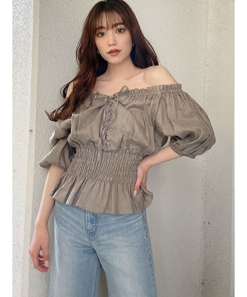 【商品コメント】コルセットオフショルブラウスのアップデートモデルです。 レースアップデザインにし、今季も2WAYで着用もできるようにしています。 ウエストギャザーもシェイプアップシルエットでスタイルがよく見えるのも拘りポイントです。 ※着用画像はフラッシュの加減で実際の製品と色味等が異なる場合がございますので、生地のズームアップ画像をご確認ください。 ※ご利用の端末画面の設定により実際の商品と色味が異なる場合がございます。 【商品特徴】 透け感:ややあり 伸縮性:なし 生地の厚さ:普通 サイズ感:普通 裏地:なし ポケット:なし 【 お買いものにおすすめの便利機能! 】 ♥商品のお気に入り登録 完売カラーの再入荷時や、ラスト1点の時、セール開始時にお知らせします。 ♥ブランドのお気に入り登録 新商品や再入荷、セール情報など、いち早くブランドのお得な情報を受け取ることができます。 ぜひご活用ください!