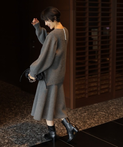 バックネックにパールを連ねた上品エレガントなニット。 ゆったりとしたオーバーシルエットで華奢な印象に見せてくれるのも魅力のひとつ。裾のサイドにはスリットを入れることで長めの着丈もすっきりと着用することができます。 洗練感のあるデザインでカジュアルにも綺麗めにもスタイリングが楽しめる1着。 同素材のスカート(品番:72438520)とのセットアップもおすすめです。 パールは9個つく仕様となります 【ご注意】 ※撮影照明の関係により、実際の商品と色味が異なって見える場合がございます。 また、パソコン・スマートフォンなどの環境により、製品と画像のカラーが異なる場合もございます。 予めご了承ください。 ※商品画像はサンプルのため、色味やサイズ等の仕様に変更がある場合がございますので、予めご了承ください。