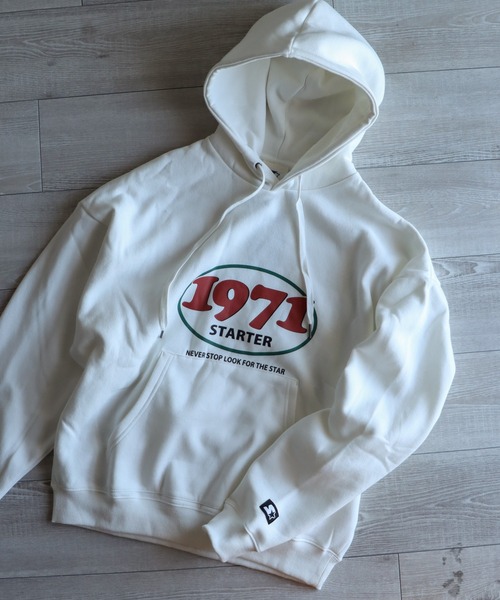 古着やストリートで人気のあるSTARTER(スターター)のCOURO別注ユニセックススウェットパーカー -detail- オーバーサイズなトレンド感のあるサイジングになっております。 STARTERらしいスポーティーな印象も残しつつ1枚で存在感のある、カラーリングとデザインに落とし込みました。 C-White、C-Gray、C-Blackについては前後のグラフィックデザインになります。 -fabric- 綿タッチなCVC素材を採用。 オープンエンド糸を使用してるのでふっくらとしており、ボリューム感がある一方で、ドライでザックリとした硬い風合いで、吸汗速乾性にも優れています。 11.5ozのしっかりとした肉感ボディで品のある着こなしも可能。 また裏起毛の加工もされてるため保温性についても◎ -styling- シンプルに1枚でオーバーサイズに着用するのもおすすめですが、メンズライクヘッドフォンやショルダーバッグ、ニット帽など合わせて、ストリートカジュアルな着こなしも◎ MA-1やキルティングベストなどとの組み合わせはもちろん女性らしいコーディネートに1枚付け加えるだけでも鮮度のある見え方になるアイテムです。 -STARTER- スターター(STARTER)は、アメリカのファッションブランド。スポーツウエアとポップカルチャーを融合した先駆けのブランドとして知られる。 80年代にはブランドとして初めて、NFL、MLB、NHL、NBA、などのプロメジャーリーグと提携。またNCAA(全米大学体育協会)を通じ120もの大学とも提携。 90年代には一流のプロアスリートやヒップホップ・映画・テレビ業界の著名人とコラボレートし、 世界初のクロスオーバーブランドとなる。