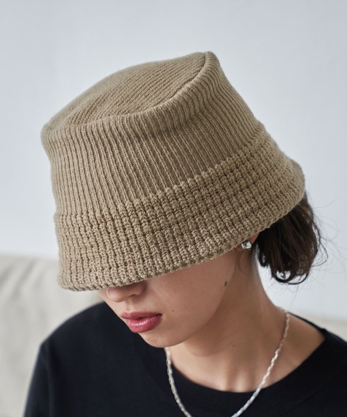2022 VACANCY FALL&WINTER PRE ORDER ◆FABRIC 暖かみのある生地感とシルエットが大人な印象のバケットハット。 深めのバケットハットで小顔効果のあるサイズ感がおすすめポイント。 表面間もニット素材がわかりやすくぽこぽこしており、暖かみのある印象に。 やわらかいニット素材の為、バックに収納しても崩れにくく持ち歩きにも便利です。 ◆STYLE CASUALな印象のバケットハットでも ニット素材にすることで大人でも被りやすく、 トラッドにもキレイめ、モードライクな着こなしにも相性抜群です◎ ・・・・・・・・・・・・・・・・・・・・ 透け感:なし 裏地:なし 伸縮性:あり 光沢感:なし 生地の厚さ:厚め ・・・・・・・・・・・・・・・・・・・・ 【お買い物をお楽しみいただく為に】 ▼お気に入り登録をオススメ致します▼ ♡をクリックして下さい。 ・《商品のお気に入り登録》で再入荷通知や、ラスト1点の通知、セールの際の通知も受け取ることができます。 ・《ブランドのお気に入り登録》で新作商品や再入荷など、お得な情報を受け取ることができます! 【ATTENTION】 ※画像の商品はサンプルです。 実際の商品と色味、仕様、加工、サイズ、素材等が若干異なる場合がございます。 ※撮影場所やお使いのモニター環境により若干お色味が異なる場合がございます。 ※製品によっては染料の特性上、湿った状態や汗をかいた状態での長時間の放置、または摩擦により、他のものへ色移りする恐れがありますので、着用時にはご注意下さい。 ※お洗濯は洗濯ネットを使用し、他のものとの混合洗いはお避け下さい。色落ちや色移りの原因となります。 タンブラー乾燥はお避け下さい。 ※風通しがよく、湿気の少ない日の当たらない場所で保管して下さい。 ※また製品加工上、お手元に届く際に匂いが生じる場合がありますが、 ご使用を続けていく事により匂いは軽減されます。