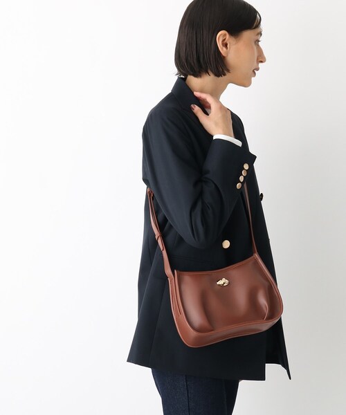 【STORY11月号掲載】クラシカルなフォルムのミニショルダーバッグ。【デザイン】メタルパーツがレトロな印象のミニショルダーバッグ。前にタックを寄せて丸いフォルムが出るようにデザインしています。口元はマグネット仕様で開閉がしやすく、コンパクトな見た目ながら長財布や500mlのペットボトルを横にして収納していただける容量があり、デイリー使いにおすすめなサイズ感です。【素材】オイルでツヤを出したような表面感のフェイクレザーを使用して、クラシカルなムードを高めています。シックなブラックと赤みのあるブラウンの2色展開。ゴールドのメタルパーツが上品な印象です。※ポケット数:内側×1 外側×1店舗へのお問い合わせ商品番号:C71-15049●製品寸法:00:高さ17cm 幅(上部)20cm 幅(下部)19.5cm マチ7cm ショルダー対応サイズ101~115cm備考:重量:約290g