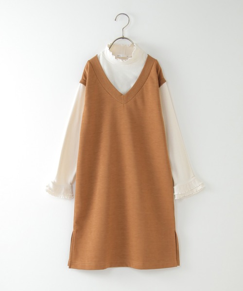 [アイテム説明] 上品で大人っぽいワンピース。 これ1枚でコーデが決まる優れもの! 【素材】 リブ素材のインナーと光沢感のあるポンチ素材。 【デザイン】 ハイネックのインナーにワンピースを合わせたドッキングデザイン。 【ikkaポイント】 フリルデザインをあしらった女の子らしい仕上がり。 トレンドの深Vネックのワンピースを、キッズでも着やすいドッキングデザインで表現。 一枚でコーデが決まる時短アイテムです!