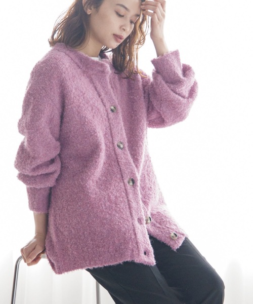 ----------------------------------------------------ゆとりのあるオーバーシルエットがリラックス感を演出!シンプルコーデにプラスしてトレンドコーデに♪----------------------------------------------------【デザイン】ポコフワな素材感が可愛いニットカーディガン!鮮やかなカラーもポイントでシンプルなデザインですが、着るだけで華やかにしてくれます。オーバーサイズのゆるっとした感じがより可愛さを引き立て、羽織っても前を閉じて1枚着としても着用出来るアイテムです!【素材】MIXのブークレ糸を使用したニットなので柔らかく、ポコフワな見た目が印象的で可愛く仕上がっています。※こちらの商品は網目がやや粗いため、お手持ちのインナーを合わせて頂くのがお勧めです。#CutieBlonde#Cutie#cutieblonde#cutie#キューティブロンド#キューティ#20代#30代ーーーーーーーーーーーーーーーーーーーーーーーーーーーー■気になるアイテムは『お気に入り登録』がおすすめです!■[お気に入り登録とは?]オンラインサイトの各アイテムにある「 マーク」をクリックして簡単に追加できます![おすすめPOINT]お得な情報をGETできます!!POINT.1再入荷通知や、値下げ情報・在庫状況をメルマガにてお知らせ♪POINT.2マイページでお気に入り一覧をチェックでき、自分だけのお買い物リストがつくれる♪ーーーーーーーーーーーーーーーーーーーーーーーーーーーーモデル情報:身長160cm B78 W59 H85 着用サイズ:00(FREE)店舗へのお問い合わせ商品番号:256-35005●製品寸法:00(FREE):着丈68cm B120cm 袖丈52cm 肩幅46cm備考: