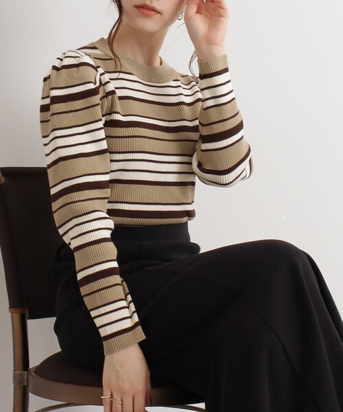 【デザイン】 肩タックのボリュームが可愛いニットプルオーバー。 肩タックのボリューム感が可愛く、女性らしさをUPしてくれるデザインに仕上がっています。 使いやすいオフ、黒の無地2色とトレンドのマルチボーダー2色の4色展開です。 1枚でもジャンスカなどのインナーにもピッタリなアイテムになっています。 【素材】 リブ編みのニットで薄すぎず程よい肉感で着心地が良い素材感です。 ※ホワイト(002)はやや透け感があるため、インナーの着用をおすすめします。 #CutieBlonde#Cutie#cutieblonde#cutie#キューティブロンド#キューティ#20代#30代 モデル情報:身長160cm B78 W59 H85 着用サイズ:02(M) 店舗へのお問い合わせ商品番号:256-15315 ●製品寸法: 02(M):着丈57cm B78cm 袖丈58cm 肩幅30cm 03(L):着丈59cm B82cm 袖丈59cm 肩幅31cm 備考: