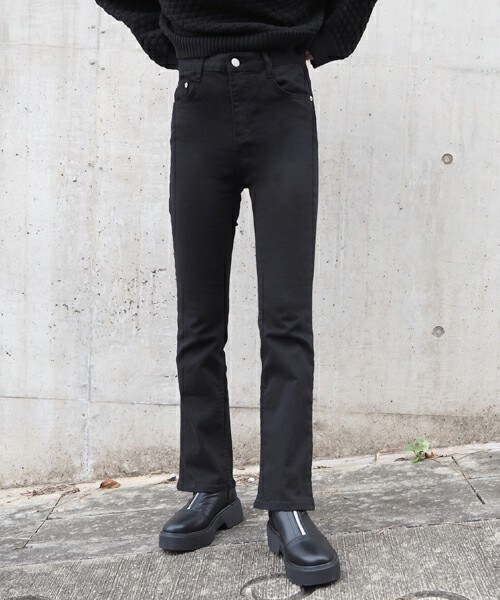 すっきりとしたシルエットで万能に合わせやすいアンクル丈のハイウエストデニム。 伸縮性のあるストレッチ素材で快適な履き心地です。 スニーカーやローファー、ブーツなどシューズを選ばないのも嬉しいポイントです。