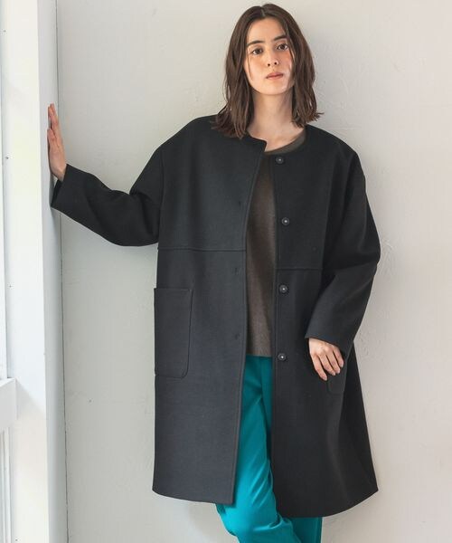 ーーー 上品な印象のクルーネックコート 《素材》 アダストリアが独自に開発した『WOOLY TEC』を使用。 ウールのように温かいのに軽い着心地が特徴です。 また、一部にリサイクルポリエステルを原料に使用し、 レーヨンも環境に配慮したもの使っているので、サステナブルなアイテムです。 ●WOOLY TEC/ウーリーテック● 化合繊のテクノロジーを駆使して、 ウールのような表情やふくらみ感のある風合いを開発した多機能素材。 「保温性」「軽量」「ストレッチ性」を兼ね備えています。 《デザイン》 クルーネックのノーカラーデザインが女性らしいアウター。 ーーー チェスターデザインよりも柔らかい印象です。 ボタンが見えない仕様ですっきりしているので、カジュアル感が抑えられて知的な雰囲気に。