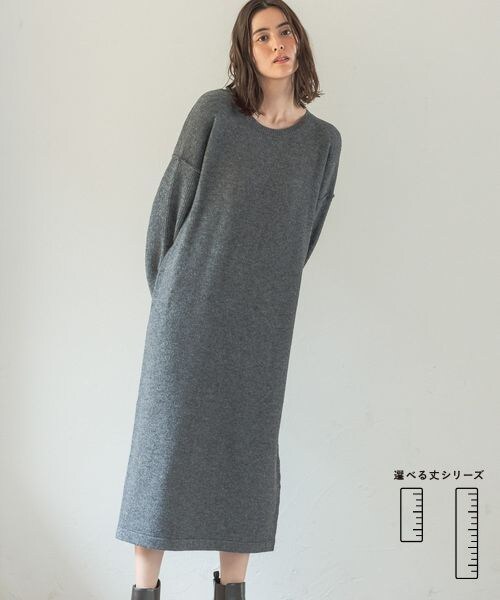 ーーー ベーシックで着回しやすい、ニットワンピース \選べる丈シリーズ/ 「FREE」と「FREE TALL」の着丈が選べるサイズ展開です。 「FREE TALL」はサイズはFREEのままで、丈だけ長く仕上げています。 ご自分の身長やお好みの着こなしに合わせて選べるようになっています! 《デザイン》 ゆるっとしたシルエットでリラックス感のあるワンピース。 シンプルですが、肩のラインやバックスリットがさりげないポイントになります。 ーーー ボリュームのあるブーツやトレンドのベストを合わせると、旬な着こなしになりおすすめです。
