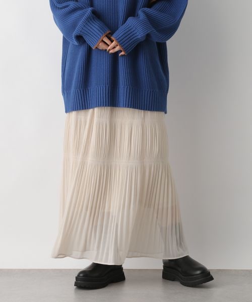 ーーー ◇デザイン 軽さのあるシャーリングディティールのスカート。 スカートの表面にギャザーを寄せることで 甘くなりすぎないIラインシルエットになっています。 タイトに仕上げることで、すっきりとさせ 今年らしくきれいなデザインに仕上げました。 ーーー ◇スタイリング チュニック丈のカットソーやスウェット合わせがおすすめです。 女性らしいフェミニンな雰囲気なので、 カジュアルなアイテムと合わせてバランスよく着こなせます。