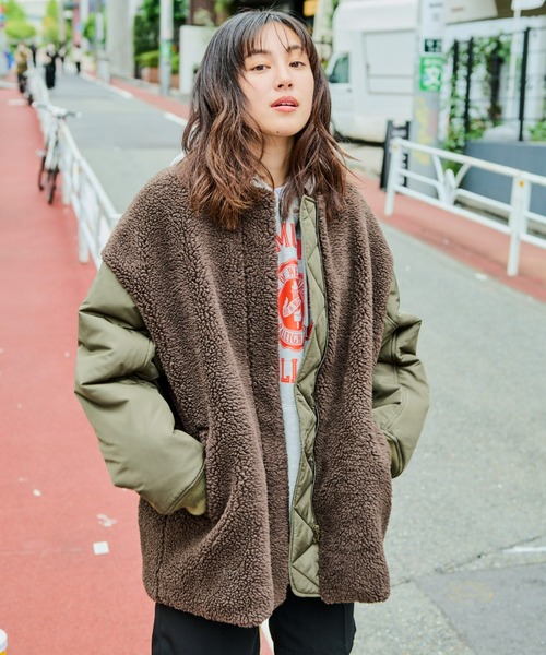 ◆切替デザインがキャッチーなブルゾンが登場! POINT 素材の切り替えデザインがポイントのブルゾンが登場。 キャッチーで存在感のある1枚なので、羽織るだけでコーディネートを格上げしてくれます。 中綿が入っているため軽やかな着心地で、防寒性にも優れたアイテム。 ゆとりのあるサイズ感なので窮屈感もなく着用可能〇 ヒップが隠れるミドル丈で取り入れやすく、重宝すること間違いなしのアイテムです♪ COORDINATE 存在感のあるデザインがコーディネートをアップデートするブルゾン。 様々なボトムスと合わせやすいミドル丈なので、幅広い着こなしがお楽しみいただけます。 カジュアルスタイルにプラスした着こなしはもちろん、きれいめアイテムと合わせたミックススタイルもおすすめです〇 透け感:なし 光沢感:アーム部分あり 伸縮性:なし 裏 地:あり 厚 み:厚手 ブルゾン/切替ブルゾン/ドッキングブルゾン/ボア/ミドル丈/ノーカラー --------------------------------------------------- ▶商品のお気に入り登録 完売カラーの再入荷通知やラスト1点の通知など お得なプライスダウンの情報も受け取ることができます。 ぜひご登録ください◎ ▶ブランドのお気に入り登録 新商品や再入荷など、ブランドの最新情報を いち早くお知らせします! ぜひご登録ください♪ --------------------------------------------------- ※撮影環境の光や角度により、実物と色味が異なる場合がございます。 また表示のサイズ感も実物とは若干異なる場合もございますので、予めご了承ください。 ※着用、お取り扱いの際は、商品に付いている品質表示を必ずご確認ください。