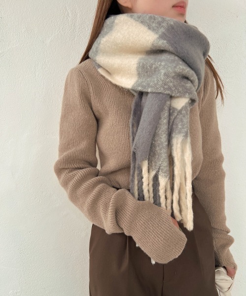 ●Bab● ■POINT 大き目の配色チェック柄がポイントのマフラー。カラーの配色もこだわりポイントです。シャギーライクの糸を使用したマフラーは、軽く柔らかかつ、温かい1枚です。厚みのありふわふわな肌触りになっています。ロング丈なのでアレンジもしやすい長さになっています。 ■FABRIC 中肉のボリュームがある厚みです。ジャギーのような少し毛をかいたふわっと感が素敵です。 ■COORDINATE マフラーとしての仕様だけでなくストールとして、またウエストベルトでマークしてベスト風にも使用していただけます。 ………………… 透け感:なし 裏地:なし ………………… ※撮影環境により、多少実際のカラーと異なる場合がございます。また、携帯やスマートフォン、パソコンなどの画面上と実物では多少色が異なって見える場合がございます。ご了承下さいませ。 ※画像の商品はサンプルのため、実際の商品と若干仕様が異なる場合がございます。 ※濃色品は、過度な摩擦や濡れた状態での摩擦により、色落ち・色移りをする恐れがあります。 ※この商品は、素材の特性上、洗濯の際に多少の縮みが生じる恐れがあります。洗濯後は形を整えてから干してください。 ※その他お取り扱いに関しましては、商品に付属のアテンションタグをご覧ください。 ★商品のお気に入り登録 再入荷やラスト1点のお知らせ、セール情報などお知らせを受け取ることができます! ★ブランドのお気に入り登録 新商品や再入荷などのお得な情報を受け取ることができますので、是非ご登録ください。 ★Bab公式Instagramアカウント【bab.showroom】で最新情報をチェック!