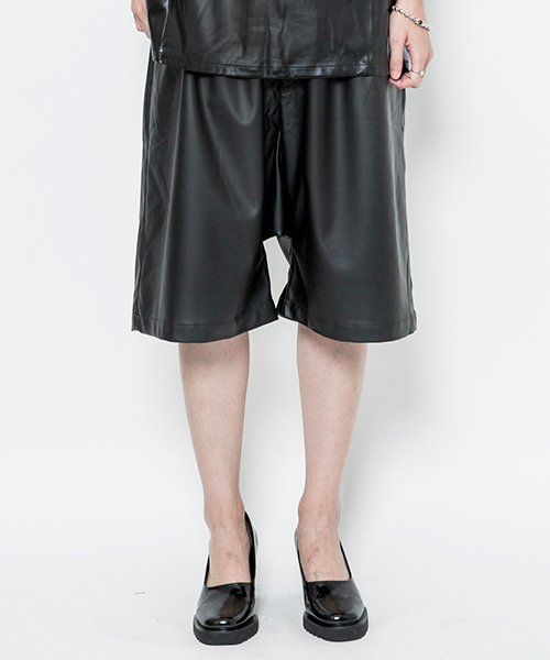 IKUMI フェイクレザーで仕上げたハーフパンツ。ルーズなシルエットでラフに着こなせます。 同シリーズのトップスと合わせたセットアップスタイルもおすすめ。