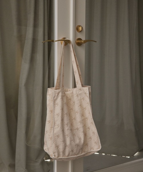 モノグラム柄のトートバッグです。マチ付きで、A4やB4がすっぽり入る大きめサイズのトートバッグです。便利な内ポケット付きです。