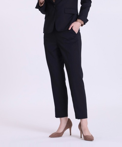 上品なメレンゲ(メランジ)見えのストレッチシャーク素材。きれいにセンターラインが入ったシンプルなシルエットで、上品にスッキリ美脚に見えるセットアップ対応のテーパードパンツ。少し短めなレングスのテーパードラインがシャープな印象を演出します。パンプスはもちろんフラットシューズやスニーカーも合わせられるシルエットです。同素材のカラーレスジャケットとのセットアップスタイリングはもちろん、ニットやブラウス等のオフィスカジュアルのボトムとしても使いやすいパンツです。 ・裏地あり ・ポケットあり ・水洗い可 セットアップ対応ジャケット品番:6524141506 ■サンプル撮影商品■ こちらの商品はサンプルでの撮影となっております。実際の商品とは、商品情報(生産国、色味、上代、納期など)が変更になる場合がございます。予めご了承ください。 透け感:なし 伸縮性:あり 裏地:あり 光沢:なし ポケット:あり
