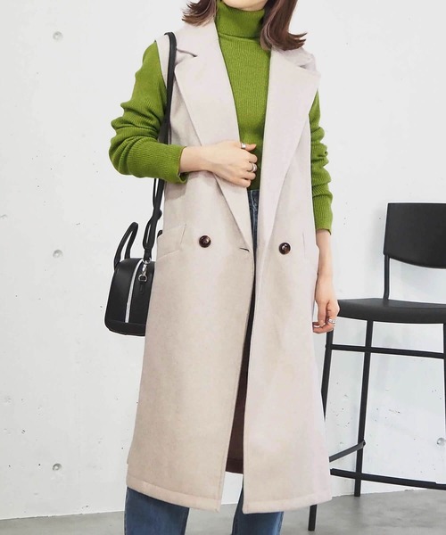 秋冬人気のフェイクウール生地を使用したチェスターコート風デザインのロングベストです。1枚羽織るだけで上品かつ高見えするスタイルに仕上がります◎パンツスタイルですっきりとした大人カジュアルコーデや、トレンドのカーゴミニスカート(119002005T)やスラックスショートパンツ(119001501T)などショート丈ボトムとロングブーツを組み合わせたスタイルアップコーデがおすすめです♪※実店舗と発売時期が異なることがございます。あらかじめ御了承ください。※撮影場所やお使いのモニター環境により若干お色味が異なる場合がございます。※お取り扱いに関しましては、商品に付属のアテンションタグをご覧ください。※サイト上のカラー名と、お届け商品に記載されているカラー名が異なる場合がございます。※生産時期により色・素材・サイズ感など多少異なる場合がございます。予めご了承くださいサイズ身幅【53cm】着丈【106cm】※こちらの商品はワンサイズのみとなります。【お買い物をより楽しんで頂くために】▼商品のお気に入り登録♡のクリックで商品のお気に入り登録が完了!完売カラー再入荷のお知らせ、ラスト1点のお知らせ、セールのお知らせを受け取ることができます。▼ブランドのお気に入り登録新商品や再入荷のお知らせ等、いち早くブランドのお得な情報を受け取ることができます。