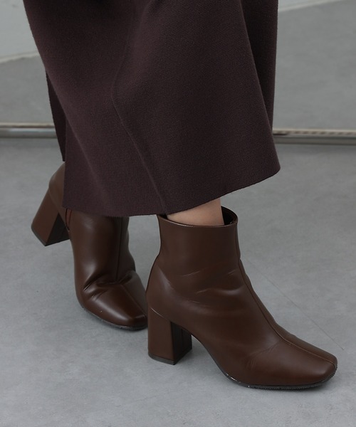 シンプルなシルエットのショートブーツ 足首まわりがすっきり見える程よいショート丈のブーツ。 丸みのあるスクエアトゥと脚をすらっと見せてくれるセンターシームがデザインのポイントです。 すこし高めなヒールながらも太めなチャンキーヒールと、クッション性のあるインソールで履き心地も快適。 着脱がラクなサイドファスナーとベーシックなデザインで着回し力抜群なアイテムです。 【ポイント】 ・丸みのあるスクエアトゥ ・脚がすらっと見えるセンターシーム ・太めなチャンキーヒール ・クッション性のあるインソール ・着脱がラクなサイドファスナー ■素材 甲材: 合成皮革, 底材: 合成底 ※着用、お取り扱いの際は、商品についている品質表示とアテンションタグを必ずご確認下さい。 ※商品タグに記載されている商品名がWEBでの表記名と異なる場合があります。 ※画像の商品はサンプルです。実際の商品と仕様、加工、サイズが若干異なる場合がございます。 ※照明の関係により、実際よりもやや明るく見える場合がございます。またパソコンなどの環境により、若干製品と画像のカラーが異なる場合もございます。予めご了承くださいませ。 【お気に入り登録】してお得な情報をCHECK!! ・「商品のお気に入り登録」で再入荷通知や、ラストの通知、セール通知も受け取ることができます。 ・「ブランドのお気に入り登録」で新商品や再入荷など、お得な情報を受け取ることができます。