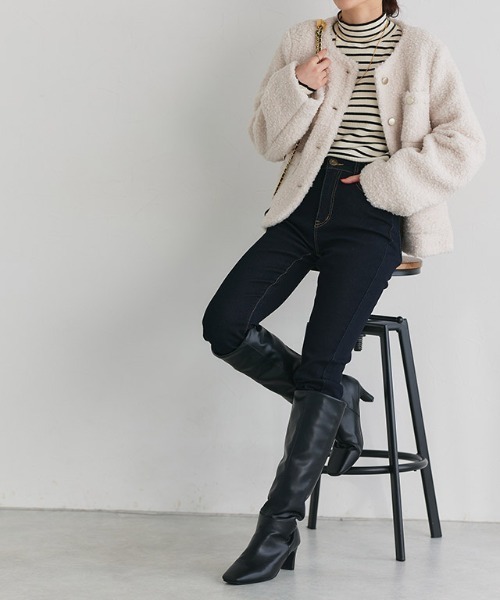 美シルエットと暖かさが叶う“裏起毛スキニーデニム”暖かいのにごわつかない「程よい起毛感」。美脚ラインとストレッチ性を保持するために、毛足の短い起毛生地を使用。滑らかな肌触りで穿いた瞬間に暖かさを実感できます。動きに合わせてぐんぐん伸びる高ストレッチ素材で、ストレスフリーな穿き心地を叶えます。透け感(淡色):なし透け感(濃色):なし伸縮性:あり裏地:なしポケット:ありファスナー:あり生地の特性上少し毛羽たちが生じます。※濃色は淡色より洗いの加工上、硬く感じる場合がございます。お洗濯などのお手入れで徐々に馴染んでまいりますので、当店では良品として販売させて頂いております。※ブラック・インディゴなどの濃いお色は他カラーより伸縮率が少なく、硬く感じる場合がございます。従来品よりも股上を高くすることで、ヒップを包み込むようなホールド感でしゃがんでも安心◎お腹をカバーするように調整し、しっかりと暖かさを感じられるようになりました。股下も短く調整することで、裾がもたつきにくいレングスに。※商品画像は着用イメージです。光や角度により、実物と色味が異なる場合がございます。また表示のサイズ感も実物とは若干異なる場合もございますので、予めご了承ください。【ブランド】Pierrot【お買い物を楽しむための方法】**商品のお気に入り登録**カートボタン横の♡をクリック!気になるアイテムが完売しても再入荷のお知らせ通知や、在庫ラスト1点の通知、セールの通知が届きます。**ブランドのお気に入り登録**ブランドトップページの「♡お気に入りブランドに追加」をクリック!新商品や再入荷など、クーポン配布などのお得な情報を受け取ることができます。※ご注文いただいた予約商品のお届け時期の確認は、注文履歴ページより行えます。<価格改定のお知らせ>2024/7/29より原材料高騰のため価格改定をさせて頂きます。ご了承下さいますよう、お願い申し上げます。