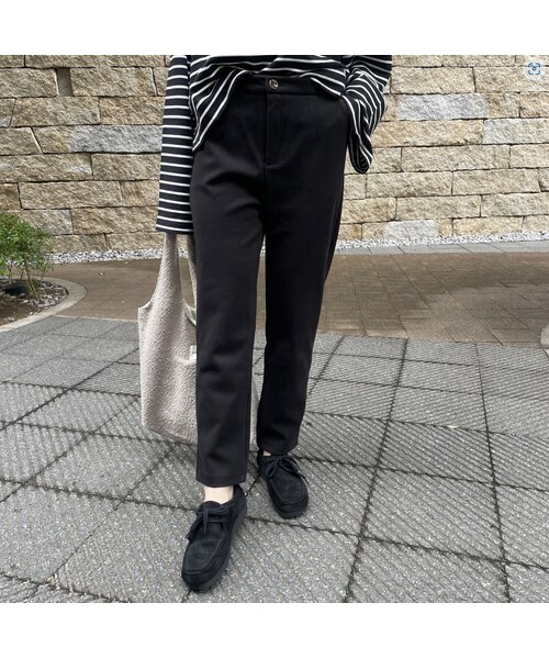 程よいゆったりシルエットのなめらかパンツ。 キメの細かい上質なスエードのような肌触りで着心地もよく、着用するだけで季節感漂う1枚。 バック部分についたフェイクポケットで、後ろ姿もすっきりと見せてくれます。 きれいめのブラウスを合わせてオフィスカジュアルや、ゆるっとしたトップスとあわせたカジュアルスタイルもおすすめです。 ※モデル身長:161㎝ ◾️クリックポストにて代引きをお選び頂いた方は、400円プラスさせていただき、宅配便代引きにて発送させていただきますのでご了承下さい。 ◾️カラー ブラック ◾️サイズ M:股下:63cm、ウエスト:32cm、ヒップ:46cm、前股上:32.5cm 後股上:32cm、もも周り:27.5cm、すそ幅:16.5cm L:股下:63.5cm、ウエスト:33cm、ヒップ:47cm、前股上:33cm 後股上:33cm、もも周り:28cm、すそ幅:17cm ※多少の誤差は予めご了承ください。 ◾️素材 綿 70% ポリエステル 30%