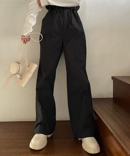 NICECLAUP 2022 autumn Collection 大人カジュアルスタイルにピッタリなナイロンパンツ 裾がワイドでスラックスのようなデザインがポイント。 適度なゆとりのあるシルエットがこなれた印象をプラスします。 今期のトレンドでもあるデザインなので、旬な着こなしをしたい方には是非GETしてほしいアイテムです。 ウエストもドローストリング仕様なのでイージーな着心地。 ウエストは自分サイズに絞って着て頂けて、サイズがS、Mの2サイズ展開なので幅広い身長の方に履いて頂けます。 トップスのサイズ感に合わせて、ハイウエスト、腰履きなど変更して履いていただけます。 ■オススメコーディネート コーデに取り入れるだけでトレンドライクな着こなしが楽しめる一枚。 短丈のトップスや、インナーにカーディガンやシャツを羽織るなど、肌見せするスタイリングがオススメ。 スエットやシンプルなカットソーなどに合わせるのも◎ サイドゴアブーツやスニーカーなどのボリュームのあるシューズを合わせて頂くと旬なスタイリングに。 又、コンパクトバッグで合わせていただくと、抜け感がでます。 ------------- 裏地 :あり 伸縮性:ウエストゴム部分あり 生地の厚さ:普通 生地の重さ:普通 洗濯 : 手洗い/ドライクリーニング ------------- ※サンプルでの撮影のため、実際のものと仕様や色が異なる場合があります。 ※室内、室外での撮影のため実際より明るく映っていたり、暗く映っていたりする場合がございます。 ※品質表示を必ずご確認下さい。 【商品のお気に入り登録】 完売カラーの再入荷や、ラスト1点のお知らせ、セールの通知を受け取ることができます。 【ブランドのお気に入り登録】 新作入荷や再入荷情報など、ブランドの情報をいち早くお届けします。 ぜひご登録ください♪