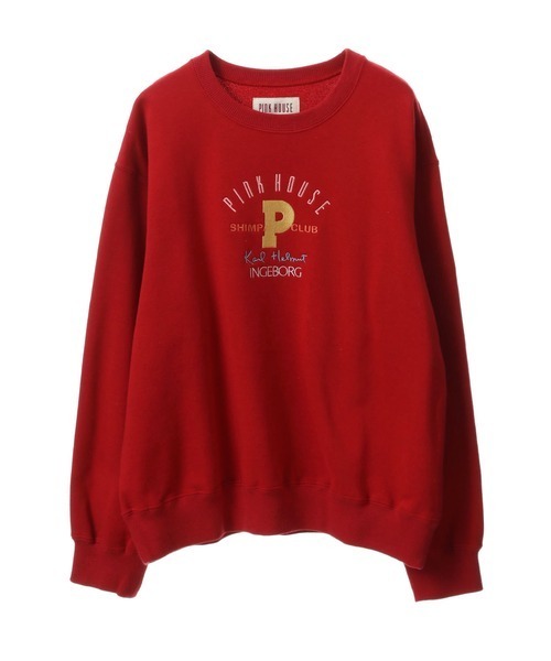 PINK HOUSE・KARL HELMUT・INGEBORG、3つのロゴを囲むようにPロゴの刺繍を施したトレーナー。シンプルなデザインとオーソドックスな裏毛素材で着合わせしやすいアイテムに。それぞれの刺繍の色使いがお楽しみいただけます。