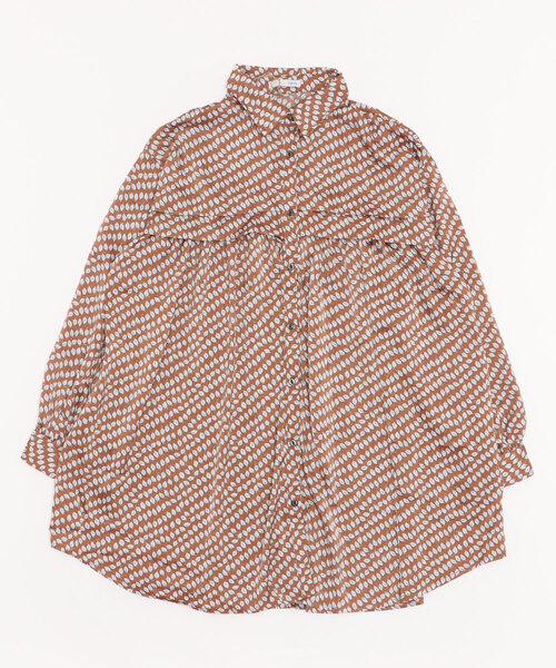 お花と葉っぱを模した、2種類のプリントブラウス。フロントにタックとギャザーを入れた細やかなデザイン。ゆったりしたサイズ感と、チュニック丈が体型カバーにぴったり。落ち着いた色味で可愛らしくなりすぎない、大人可愛いアイテムです。