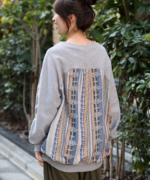 柄使いで個性が光るスウェットプルオーバー ■デザイン 裏毛スウェットとジャカード生地を組み合わせた人気のデザインです。 背中の立体的な表面感のあるジャカード生地が最大のポイント! 袖口と裾はリブ仕様で、ふんわり丸いシルエットにメリハリをプラスしました。 フロントからもサイドに柄が見えるので、すっきりとした印象に仕上がります。 ■サイズ感 レディースフリーサイズ ゆったりとした長めの丈が、腰回りまですっぽり包み込みます。 ■素材感 無地部分は伸縮性のある裏毛スウェット。 柄部分は刺繍入りのジャカード生地を使っています。 ■スタイリング シンプルなボトムスと相性が良く、普段使いしやすいデザインです。 柄の配色を拾ったカラーパンツとの組み合わもおすすめです。 ■カラー ベージュ/グレー ※過去に実店舗でも販売していたブラック、ブルーは完売となっております。 --------------------------------- 透け感:透けない 伸縮性:あり(無地部分のみ) 裏地 :なし 光沢 :なし 生地の厚さ:普通 ポケット:なし --------------------------------- 【お取り扱い上のご注意】 この製品はインド製の生地を使用しています。 染め、織りむら等による独自の風合いをお楽しみ下さい。 ・この商品は水洗いができません。石油系の溶剤を使用し、弱いドライクリーニングができます。 ・洗濯やクリーニングによって縮んだり、色落ちすることがあります。 ・濃色品は摩擦や水に濡れますと移染する恐れがあります。 また、淡色の衣類との併用はご注意ください。 ・デリケートな素材ですので、激しい運動や極度な力によって、縫い目が開いたり目寄れする事がありますのでご注意ください。 ・刺繍、レース、ビーズなどの装飾がある場合は引っかかり易く、解け易いので、お取り扱いにご注意ください。 ・直射日光や蛍光灯の長時間照射は、変色の要因になりますのでお避け下さい。 【TITICACAのお買い物をお楽しみいただくために!】 ▼商品のお気に入り登録 完売カラーの再入荷通知や、ラスト1点の通知、セールの通知も受け取ることができます。 ▼ブランドのお気に入り登録 新商品や再入荷など、いち早くブランドのお得な情報を受け取ることができます!