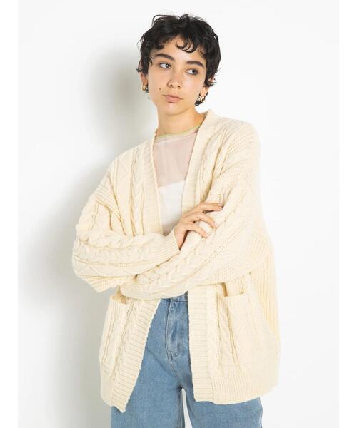 ざっくりとしたケーブル編みがシーズンムードを高めてくれるカーディガン。 ボタンレスのデザインになっており、程よい抜け感を演出。 肩落ちのシルエットでルーズな着こなしに仕上げてくれます。 幅広いボトムスに合わせやすく、デイリーユースにぴったりなアイテムです。 透け感[無し] 裏地[無し] 伸縮性[やや有り] 光沢感[無し] 生地の厚さ[厚手] 付属品[無し] ポケット[有り]前2つ ● koe ● (コエ) 「New Basic For New Culture」をコンセプトとした、 新しいライフスタイルブランドです。 地球環境などあらゆるものの「声」を傾聴し、常に変化し続ける「New Basic」としての ファッション、体験を生み出すことを目指しています。 ▼ 商品のお気に入り登録がおすすめです ▼ 商品ページ内のハートマークをクリック。完売時の再入荷や、最後の1点の通知、コーディネート画像がアップされたとき、お得なお値下げの際の通知を受ける事ができます。
