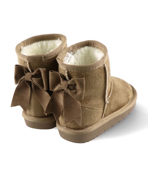女の子に大人気のバックリボン付きフェイクムートンブーツが今年も登場! 履き心地が良くてあたたかい、リピーター続出のブーツです。 定番カラーのキャメル、ブラックに加え、優しいピンク、新色ベージュの4色展開。 アウトソールはデコボコとしたデザインにしているため滑りにくく安心です。 ※モデル着用写真についてはイメージの為、実際の 商品とカラーや仕様が異なる場合がございますので、 商品画像をご覧ください。 ※商品の色味につきまして、お客様のお使いのPCの モニター環境により実際のカラーと画像の色味が 違って見える場合が御座います。 予めご了承の上、ご注文下さい。 ※店頭・外での撮影画像は光の加減で、 実際の商品より明るく見える場合が御座います。 子ども/子供/こども/子供服/キッズ/ジュニア/男の子/女の子