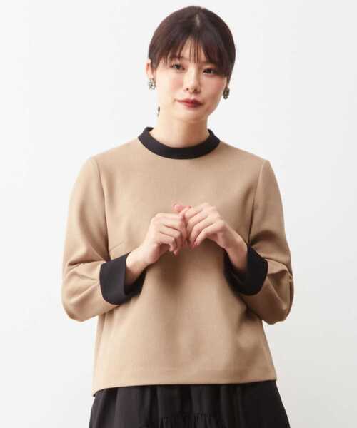 バイカラーのアクセントを前立てと袖口に付けたクラシカルなトップスです。 バイカラーのアクセントでも60年代を思わせるクラシカルさが特徴です。 無駄なくびれなどはなく、シンプルなシルエットで体のラインを拾わないボクシーなトップスです。 素材にしっかりとした肉感があるので、体のラインをひろいにくいのも嬉しいポイントです。 また、冬場でもきれいめに過ごしたい方に、ニットとは違った温かさのあるブラウスとしておすすめです。 ニットが苦手な方にも。裏の使用に配色のパイピングを入れて脱いだ時に見えるポイントもあります。
