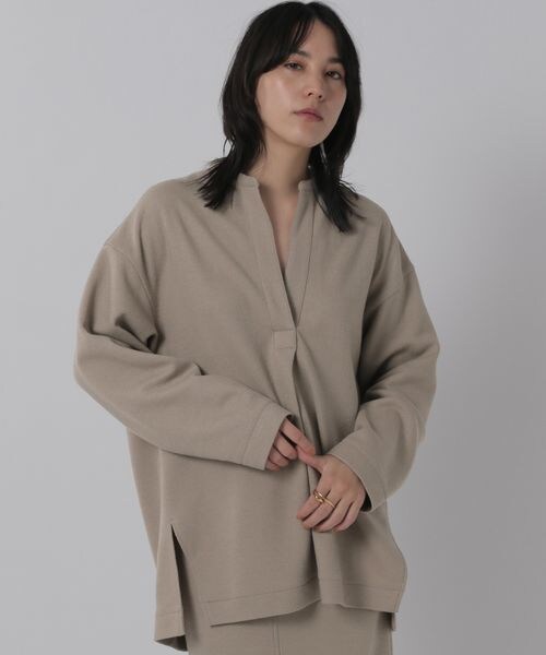 ーーー オーバーサイズのシャツプルオーバー ーーー -fabric- スーパー100Sの糸を使用したウールのカット素材を使用しています。しっかりとした厚み がありながらカットソーなので着心地も良く、上品な素材感です。 -design- シャツプルオーバーのオーバーサイズのデザインです。後ろ見頃を立体感のあるシルエットにしていますので、 横からみたラインがとても素敵です。同素材のタイトスカートとセットで着て頂くのがお勧めです。 -how to care- こちらの商品ドライクリーニングでのお洗濯をお願いいたします。 ▼同素材のシリーズアイテムはこちら▼ ・ラクレジャージースカート