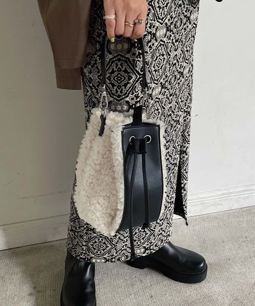 ーーー ボア×合皮がポイントのバッグ 季節感のあるボアをメインに、合皮を組み合わせ、秋冬のスタイリングのポイントとなるデザイン。 ころんとした丸みのあるフォルムが◎ 開口部分は大きく開くので物の出し入れがしやすく、広めのマチ付きで収納力もあり活躍間違いなしのアイテムです。 手持ちとしてもショルダーバッグとしても使える2WAYタイプです。 ーーー 〈注意事項〉 ・サンプルにて撮影をしておりますので、実際の商品とは素材や仕様・加工・サイズ等が若干異なる場合がございます。 ・モニター・環境等により実際の商品と色味が多少異なって表示される場合がございます。予めご了承をお願いいたします。 ・撮影環境により、光の当たり具合で色味が違って見える場合があります。あらかじめご了承下さい。
