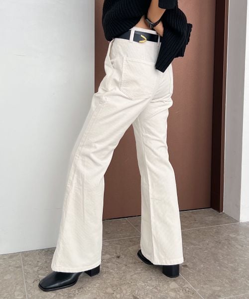 ーーー 秋冬らしい素材感のコール天を使用したフレアパンツ ポケット口から裾にかけてのセンター切り替えが足を長くスッキリと見せます。 太すぎない細いコール天の畝はカジュアルになりすぎずない優れもの。 履きこみの深いハイウエストと程よいフレアシルエットはトレンド感のある今年らしいシルエットです。 ーーー 〈注意事項〉 ・サンプルにて撮影をしておりますので、実際の商品とは素材や仕様・加工・サイズ等が若干異なる場合がございます。 ・モニター・環境等により実際の商品と色味が多少異なって表示される場合がございます。予めご了承をお願いいたします。 ・撮影環境により、光の当たり具合で色味が違って見える場合があります。あらかじめご了承下さい。