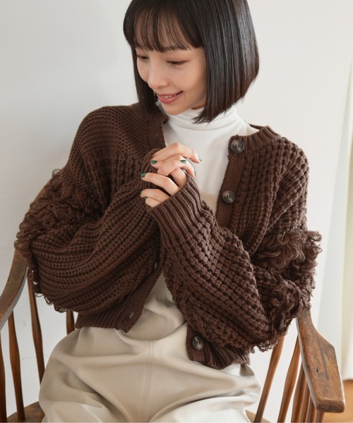 さまざまな編地をミックスしたニットカーディガン。 スリーブラインに施したループ状の編地も凝ったポイントです。 ワンピースの羽織りとしても、ボタンをすべて留めてプルオーバーのようにも着られます。 ショート丈のシルエットは、ハイウエストのボトムス合わせがおススメ。 ●商品特性● 〇透け感:なし 〇生地の厚さ:厚手 〇裏地:なし 〇伸縮性:あり 〇光沢:なし 〇シルエット:スタンダード ------------------------------------------------------ 商品のお気に入り登録➡ お気に入りアイテムの値下げ・再入荷・在庫1点などの通知を受け取ることができます。 ブランドのお気に入り登録➡ 新商品や再入荷、セール、クーポン配布などお得な情報を受け取ることができます。 ※商品の色味は、撮影場所や光のあたり具合などにより色味が違って見える場合が御座います。 ------------------------------------------------------