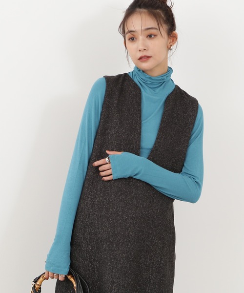 トレンド感のあるフィンガーホールリブインナー。ロングスリーブの袖口にいれたサムホール(親指)がアクセントになり手の甲をカバーするレディ感のある見え方に。 ハイネックの襟元はくしゅっとさせて顔まわりを印象的に見せてくれます。 身頃はシンプルなシルエットなので、ボトムスINやジャンスカとレイヤード、カーディガンを羽織るなど、様々なコーディネートに活躍できます。