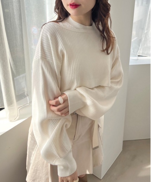 旬なレイヤードスタイルが叶う1枚 ■デザイン ・トレンドのクロップド丈トップスとインナーのお得なセット。 ・インナーはアメリカンスリーブで程よい肌見せが叶います。 ・柔らかいニット素材で着心地も抜群。 ・トップスはクロップド丈なので着るだけで脚長効果も◎ ・シンプルなので様々なボトムスと合わせやすいアイテムです。 ■カラ― ・オフホワイト/サックス/ブラックの3色展開 ■スタイリング ・カーゴミニスカートやデニムパンツでカジュアルライクな着こなしがおすすめ。 ・甘めが好きな方はフレアスカートやマーメイドスカートが◎ ・足元は二―ハイブーツやサイドゴアブーツで合わせていただくと今年っぽいです。 ■POINT秋服、秋コーデ、冬コーデ、冬服、ニット、短丈、クロップド丈、ショート丈、ハイネック、ボリューム袖、ボリュームスリーブ、韓国コーデ、韓国ファッション、ガーリー、レトロ、スポーティ、大学生コーデ ----------------------------- 裏地:なし 光沢感:なし 透け感:なし 伸縮性:あり ----------------------------- model:152cm/166cm ※着用、お取り扱いの際は、商品についている品質表示とアテンションタグを必ずご確認下さい。 ※ご覧のモニター環境や撮影環境により実際の商品と多少色味が異なって見える場合がございます。 ご理解の程よろしくお願いいたします。 ※引っかけ注意 ・粗い組織のものや、表面に凹凸があってルーズな組織のもの 表面に糸が浮き出ているものは、ちょっとした不注意から引っかけてしまいがちです。 取り扱いの際は取り扱い絵表示確認の上、十分注意してください。 ・着用時にベルトや、バックや周囲の壁など表面の粗いものとの摩擦や引っかかりに注意してください。 ・水洗いやクリーニングの際にも他の物ものとの引っかかりに注意して下さい。■お気に入り登録のおすすめ【気になるアイテムを登録】ハートをクリックしてお気に入りに登録すると完売カラーの再入荷やラスト1点の通知、セールの通知を受けとることができます。【ブランドを登録】新商品や再入荷、セール通知など、いち早くブランドの情報を受けとることができます。