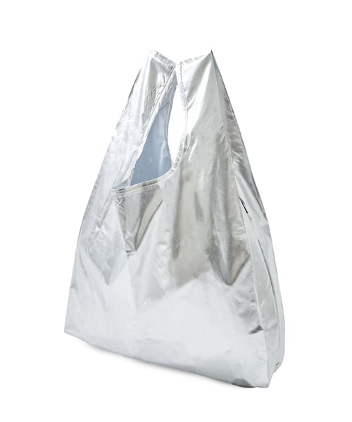 ●パッと目を引くようなシルバーカラーのエコバッグ◎●小さくまとめやすいように口の部分にゴムが付いております。*******仕様*******耐荷重:7kg*****************《ご使用上の注意》●汗・雨など湿った状態や摩擦により色移りする場合がありますので注意してください。●洗濯・タンブル乾燥・アイロン掛け・クリーニングはできません。●破損の原因になりますので、無理な詰め込みや、極めて重いものは入れないでください。●中に入れたものの紛失・破損や万が一の事故などについては責任を負いかねますので予めご了承ください。●火気の近くや高温多湿の場所に置いたり保管しないでください。【fashion】[bag]